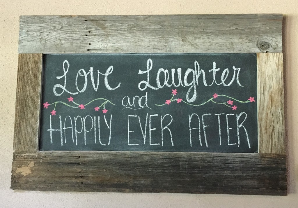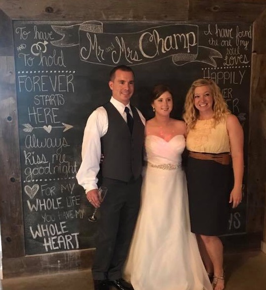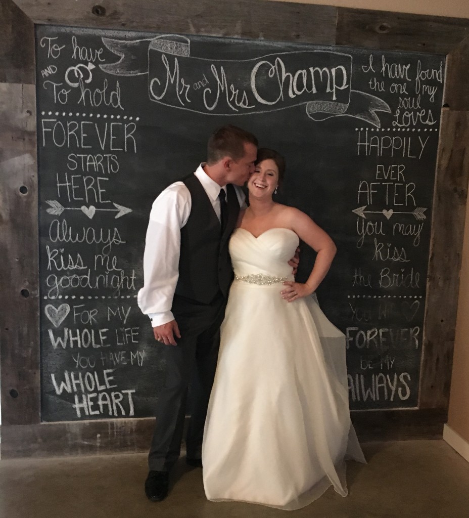 Candice decorated the chalkboard wall for the Champ wedding reception,
