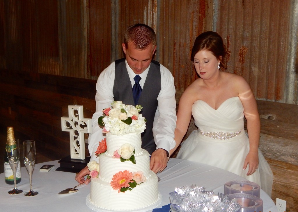 El Chico catered the reception. The professional photographer was a longtime friend. Creative Innovations was the florist for the Bridal bouquet, and she also added an extra floral touch to the wedding cake which was decorated by Tracylyn with Simply Sweet. Ashley and Josh have been childhood friends with Tracylyn’s kids. The Mother of the Bride’s friend, Pam, had the honor of cutting the wedding cake; they had attended high school together and have remained friends as Ashley was growing up.