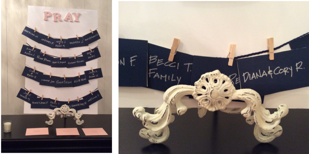 card on a prayer board with a prayer inside that was written just for them.