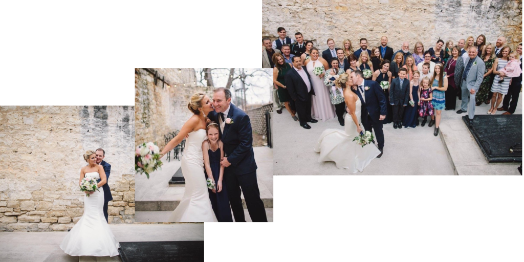 with the rustic rock wall as a backdrop. The photographers for