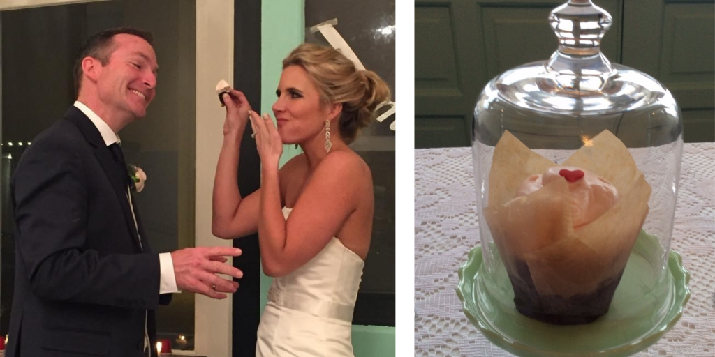 cutting of the cake, they cut the cutest cupcake with a little red heart on the top.
