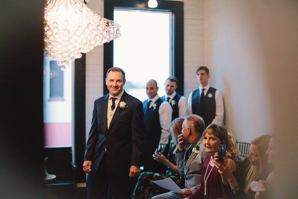she is walking down the aisle. This is a look of a man in love!